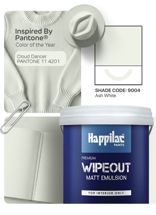 Discover the serene elegance of ‘9004 Ash White’, Happilac Wipeout’s Shade of the Month. This timeless neutral exudes calm, balance, and modern sophistication, effortlessly elevating any space. Inspired by Pantone Color of the year Cloud Dancer Pantone 11-4201, Ash White offers subtle depth with a striking presence, creating interiors that feel fresh, refined, and stylish. Perfect for crafting a peaceful sanctuary or a contemporary statement, this versatile shade brings harmony and understated elegance to every corner of your home. Let your walls embody the quiet power of ‘9004 Ash White’ and transform your interiors into a haven of effortless style.